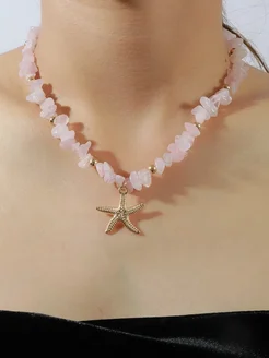 Колье ожерелье из розового кварца с морской звездой