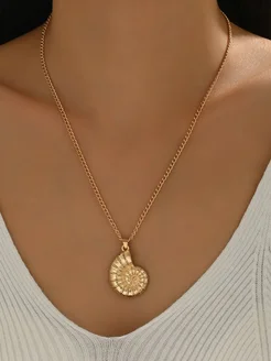 Цепочка трендовая золотистая с ракушкой аммонит на удачу)