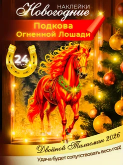 Новогодние наклейки на окна Лошадь 2026 двусторонние