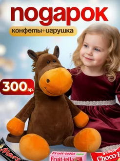 Сладкий новогодний бокс 2026 мягкая игрушка-рюкзак лошадки