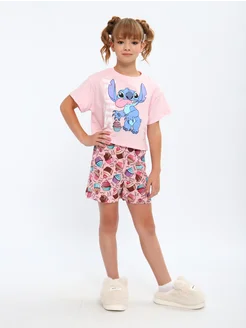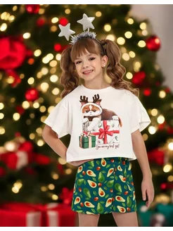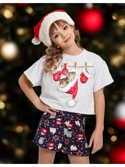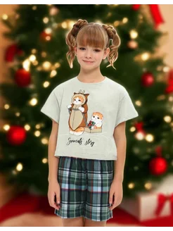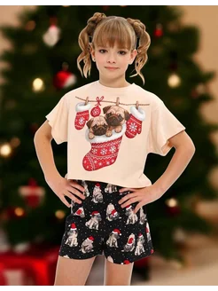 Новогодняя пижама для девочки с шортами и футболкой 2026