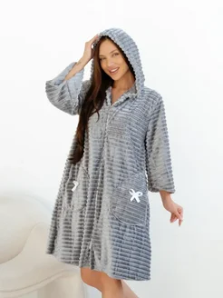 Халат домашний теплый на молнии с капюшоном