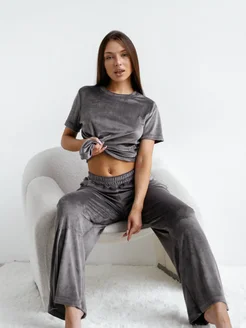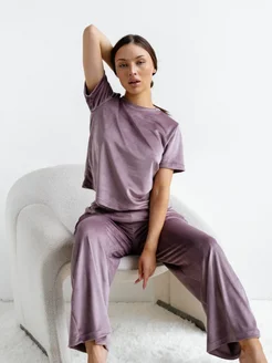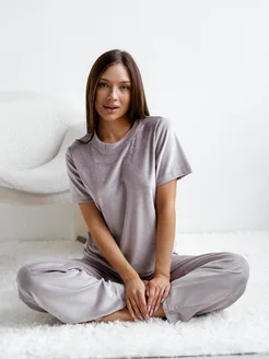 Пижама домашняя со штанами и футболкой из велюра