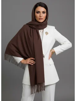 Палантин кашемир шарф теплый большой осень зима однотон шоко