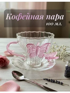 Кофейная пара с бабочкой, чашка с блюдцем 100мл