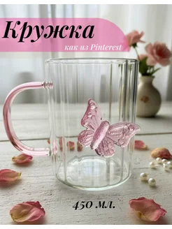 Кружка стеклянная с бабочкой