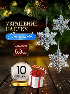Снежинки на елку прозрачные 10 шт новогодние елочные игрушки