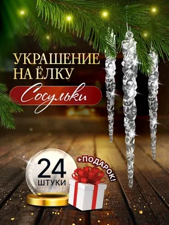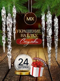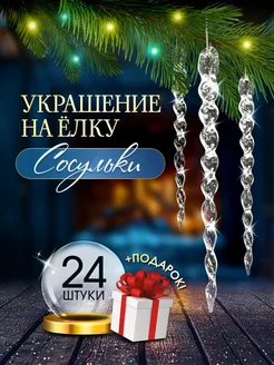 Сосульки на елку прозрачные 24 шт новогодние елочные игрушки