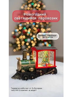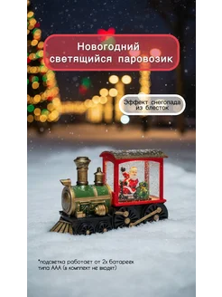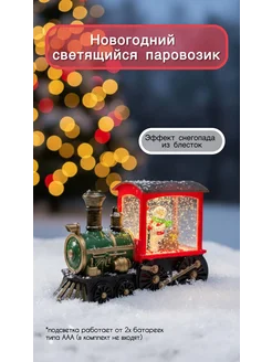 Новогодняя светящаяся фигурка паровоз с дед морозом