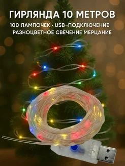 Гирлянда роса разноцветная мигающая мерцающая для елки