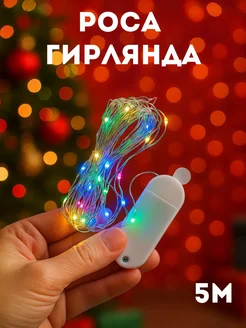 Роса гирлянда на батарейках на елку новогодняя 5 м