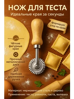 Нож фигурный нарезки теста для равиоли и печенья роликовый