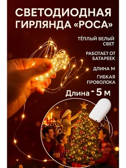 Гирлянда золотая на батарейках роса нить на ёлку 5м