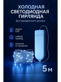 Белая, новогодняя гирлянда н елку батарейках 5 м