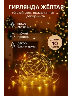 Желтая гирлянда роса для новогоднего декора 10 метровая