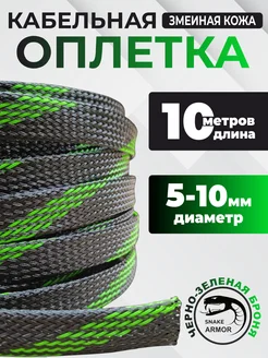 Кабельная оплетка, Черно-зеленая 5-10мм, 10м для провода