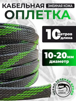 Кабельная оплетка, Черно-зеленая 10-20мм, 10м для провода