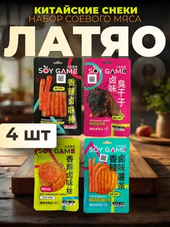 Китайские снеки, соевое мясо Soy Gаme, набор 4 штуки