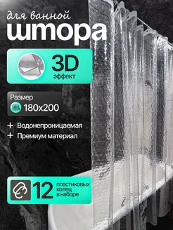 Штора в ванную 180х200 водоотталкивающая 3D