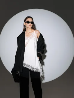 Топ-платье шелковый с кружевом в бельевом стиле