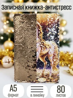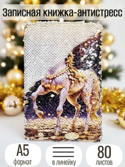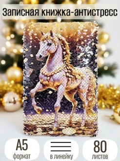 Записная книжка с пайетками Символ года 2026 год лошади, А5
