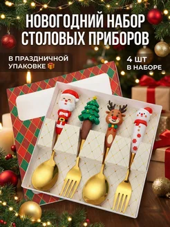 Новогодний набор золотых столовых приборов 4 предмета