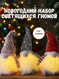 Новогодние гномики светящиеся под елку 3 штуки
