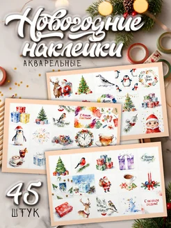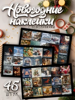 Новогодние наклейки стикеры для подарков, набор 45 штук