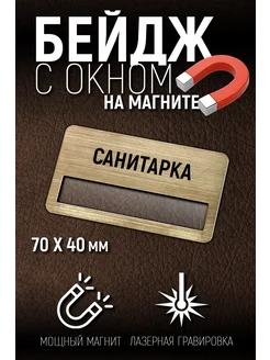 Бейдж санитарка на магните с окном персонализации