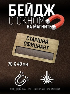 Бейдж Старший официант на магните с окном для имени