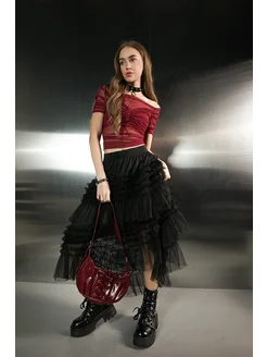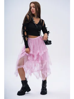 Юбка фатиновая миди бохо асимметричная готическая лолита y2k