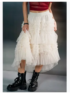 Юбка фатиновая y2k бежевая асимметричная ярусная волан