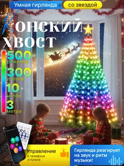 Умная гирлянда на елку Конский Хвост со звездой 3 метра