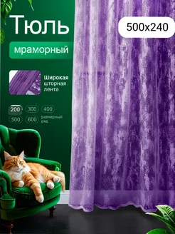 Тюль мрамор сиреневый 300х250 для гостиной и спальни
