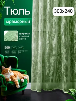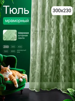 Тюль мрамор оливковый 300х240 для гостиной и спальни