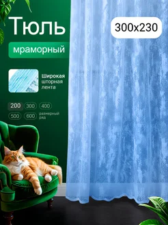 Тюль мрамор голубой 300х230 для гостиной и спальни