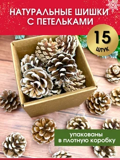 Натуральные новогодние шишки с петелькой,набор 15шт
