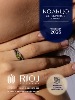 Серебряное кольцо с хризолитом, коллекция "Сияние природы"