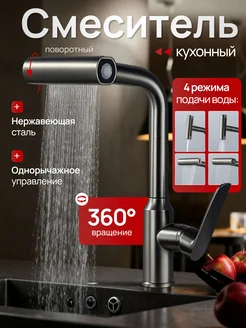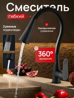 Смеситель для кухни гибкий кран с душем и длинным изливом