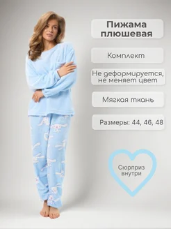 Пижама теплая плюшевая велсофт нежно-голубая