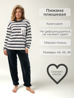 Пижама плюшевая велсофт черно-белая, с принтом