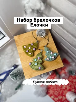 Брелки на сумку рюкзак елку вязаные мини елочки на Новый год