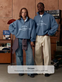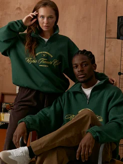 Свитшот на молнии без начеса оверсайз кроп полузамок винтаж