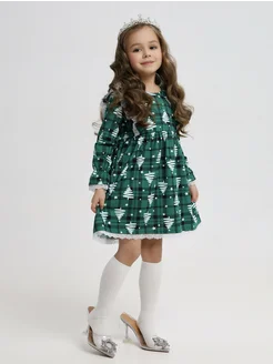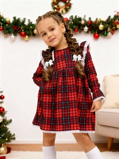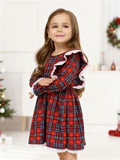 Платье для девочки новогоднее в клетку