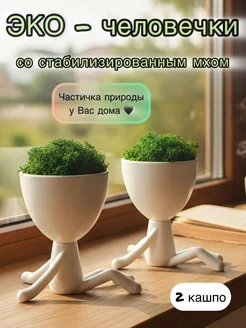 Кашпо "человечек" со стабилизированным мхом 2 штуки