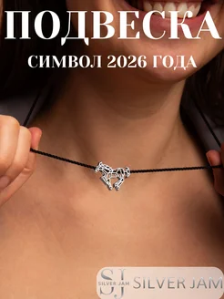 Подвеска серебро лошадь на черном ювелирном шнурке гайтан