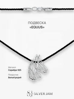 Подвеска лошадь серебро "EQUUS" на черном шнурке гайтан
