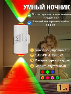 Двухголовая магнитная лампа RGB с датчиком движения ночник