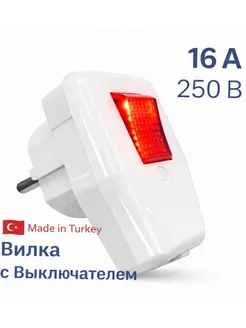 Вилка угловая с заземлением белая с выключателем 16А 250В