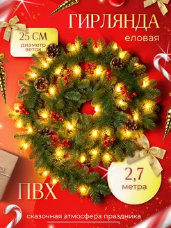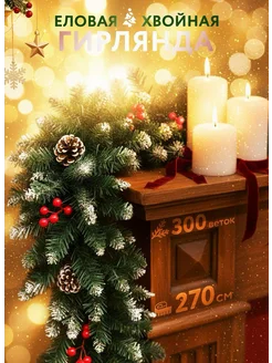 Гирлянда еловая хвойная, новогоднее украшение для декора
